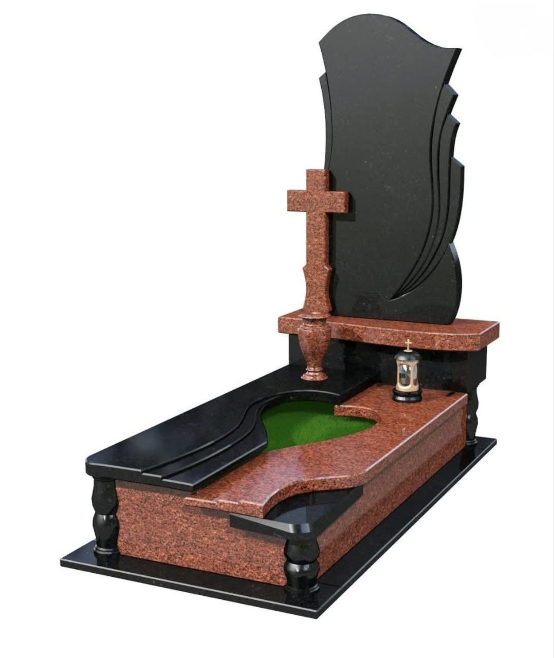 Елегантний одинарний пам’ятник із преміального натурального граніту, виконаний у стильному поєднанні чорного полірованого каменю та бордово-червоного граніту. Завдяки гармонійній асиметричній формі стели та різьбленій декоративній хвилі пам’ятник виглядає сучасно, презентабельно та дуже благородно.